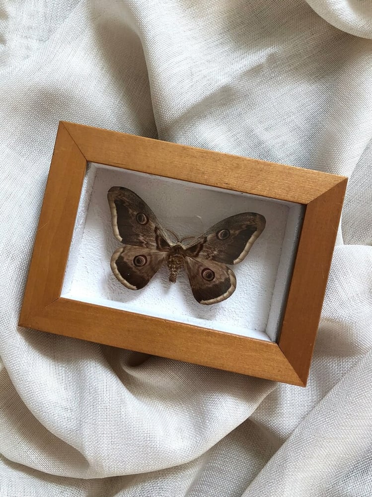 Création unique : véritable papillon naturalisé "petit paon de nuit" datant des années 50.