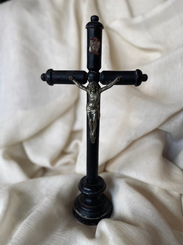 Objet ancien : magnifique crucifix Napoléon III à poser en bois d'ébène, quelques traces d'usure, dimensions 30x14cm