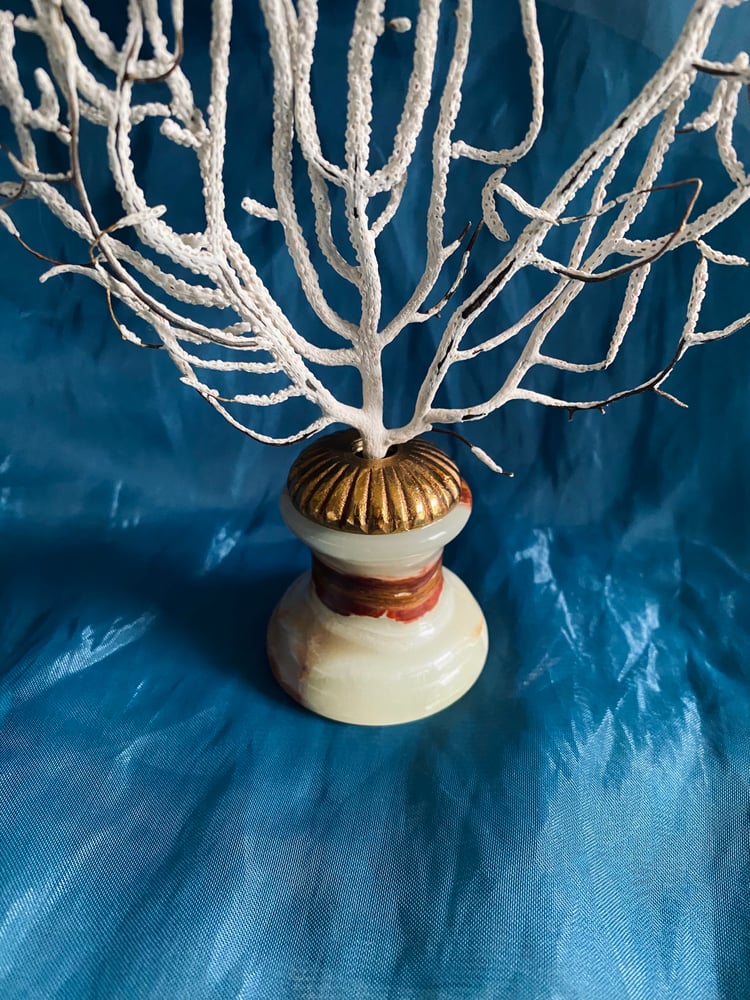 Création unique : véritable gorgone montée sur un socle vintage en onyx et laiton doré. Très belle pièce pour un cabinet de curiosités !