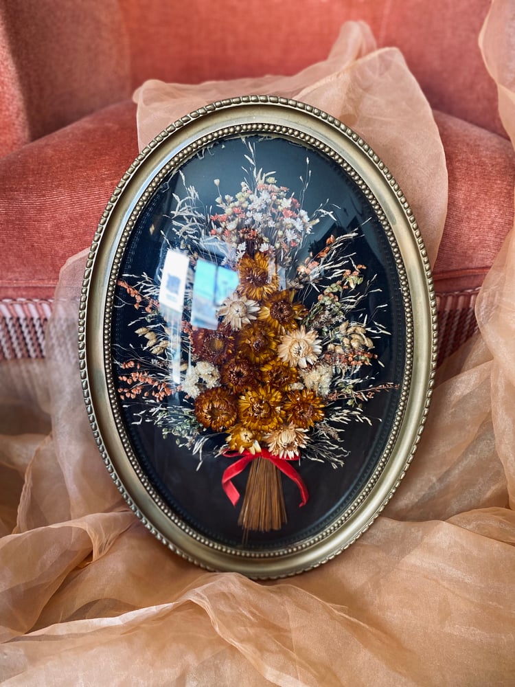 Très grand cadre ovale avec bouquet de fleurs séchées