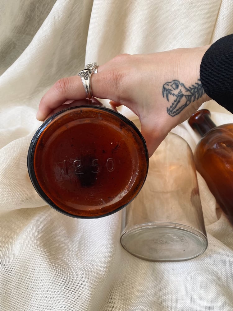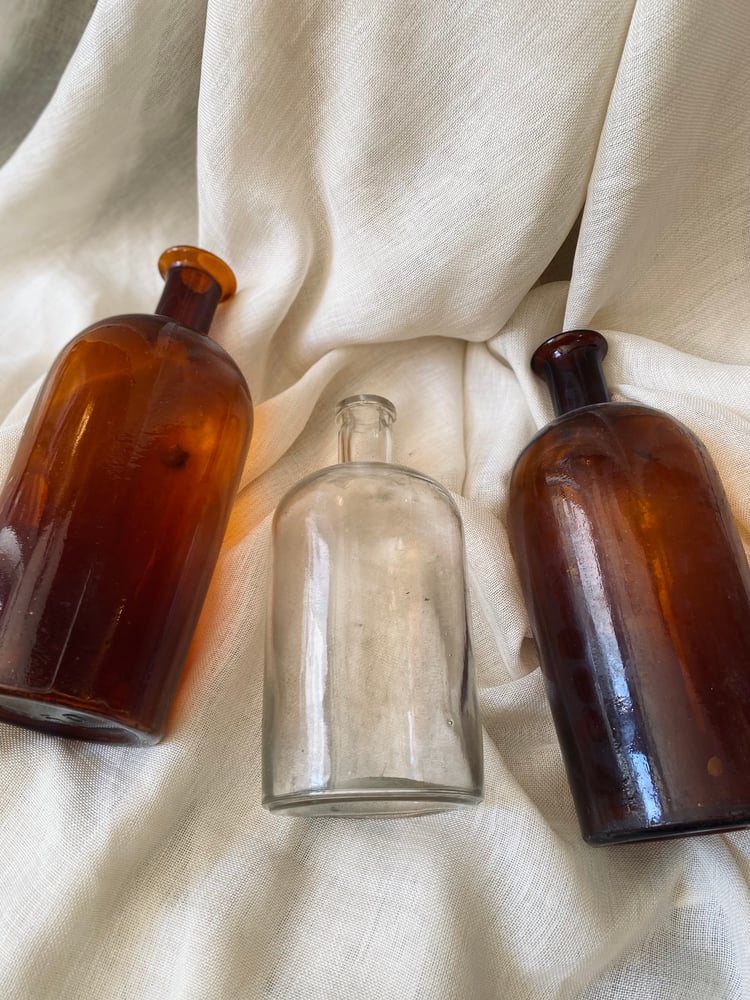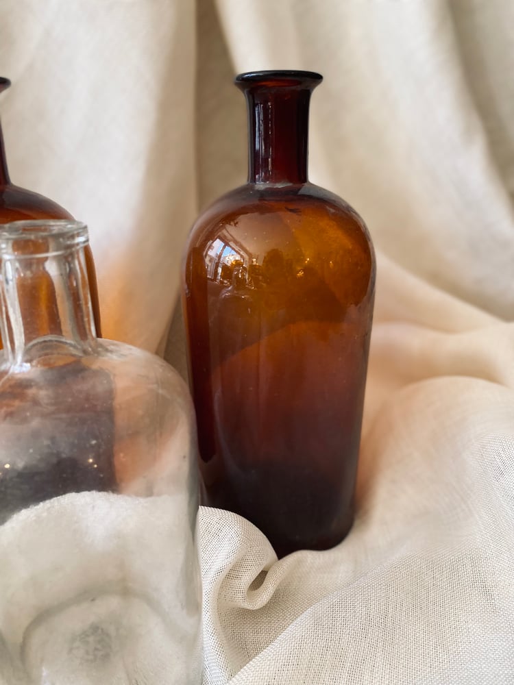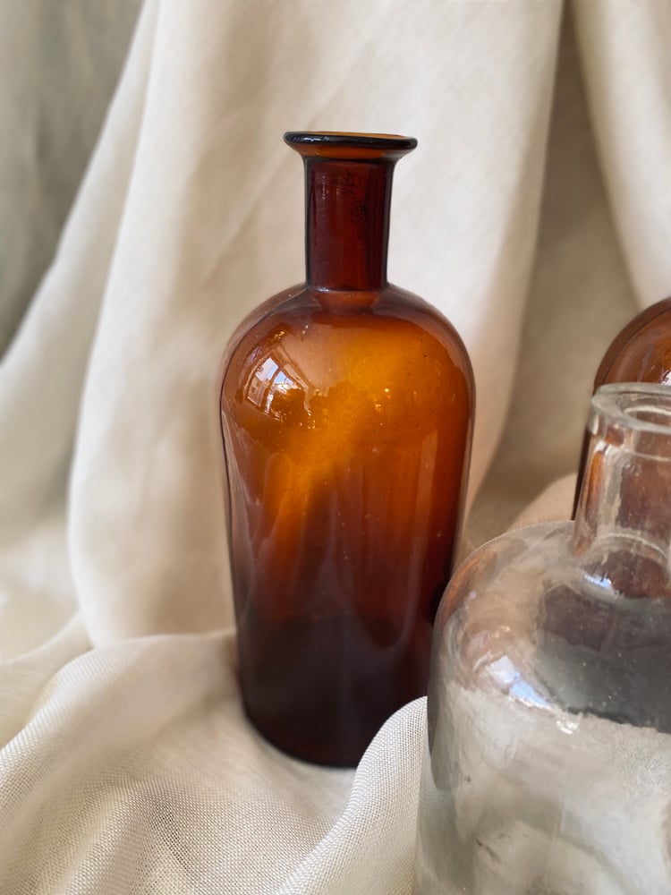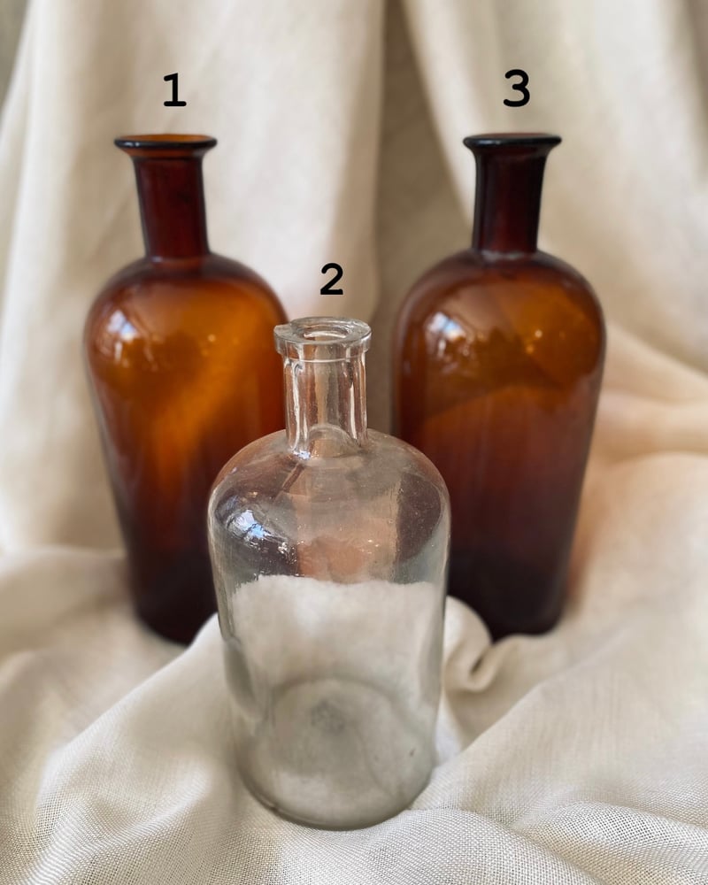 Objets anciens : véritables flacons d'apothicaire anciens numérotés, entre 1930 et 1950, dimensions hauteur 21cm (transparent) et 27cm (les ambrés), 10cm de largeur. Ils n'ont pas de bouchons. J'ai pris soin de faire des close-up sur chacun des flacons. Chaque flacon a son numéro (photo 2), merci de choisir dans la liste déroulante celui que vous souhaitez acquérir. Pièce parfaite en décoration sur une étagère ou dans une bibliothèque !